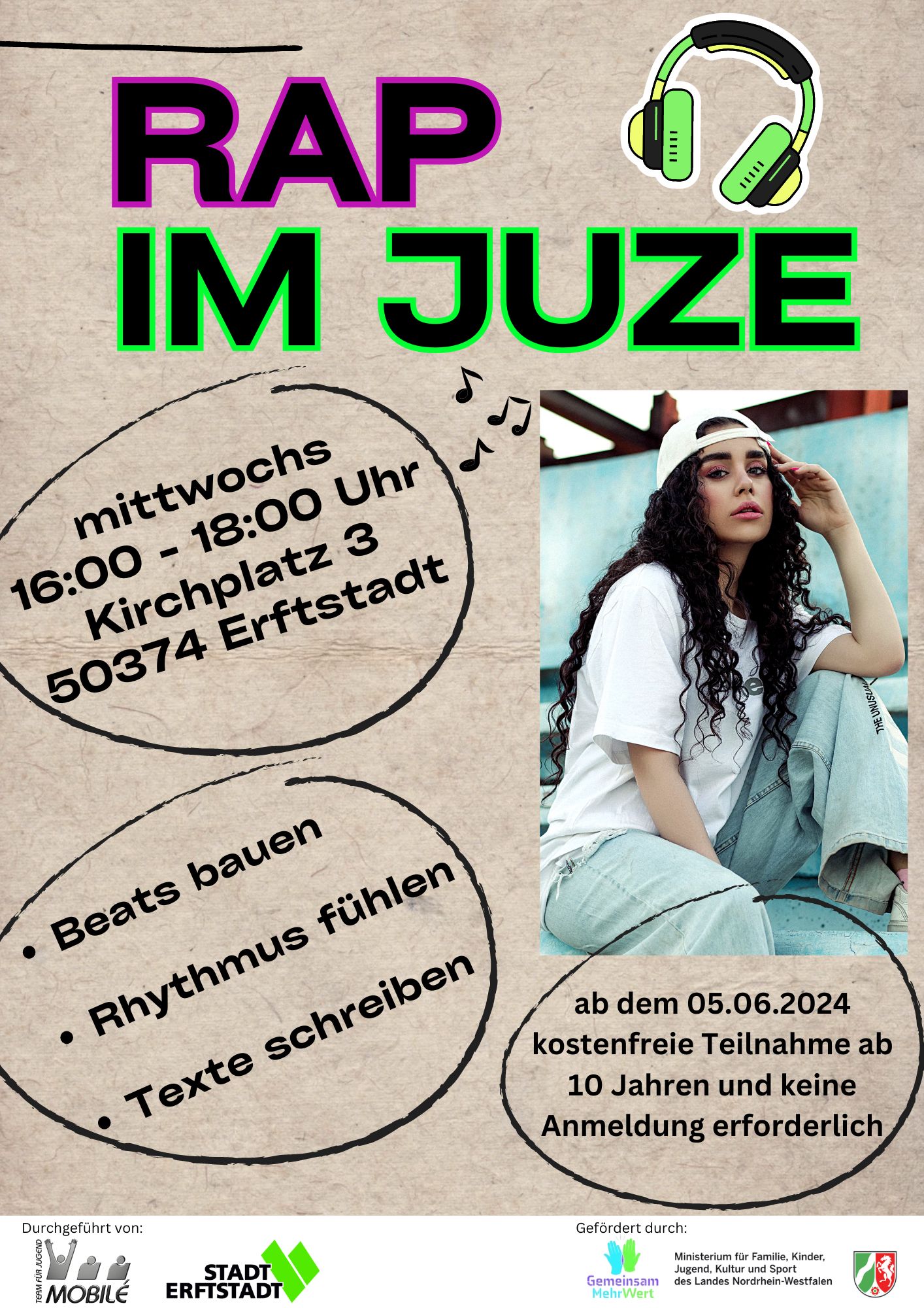 Die Anmeldung für die Projektreihe ist kostenlos und erfolgt persönlich im Jugendzentrum Köttingen (Kirchplatz 3, 50374 Erftstadt zu folgenden Öffnungszeiten: Di. 15:00 – 20:00 Uhr, Mi. & Fr. 15:00 – 18:00 Uhr) oder per E-Mail an Jugendzentrum@erftstadt.de.